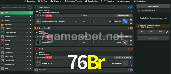 A aposta 76Br oferece aos jogadores a experiência mais conveniente de apostas em eSports!